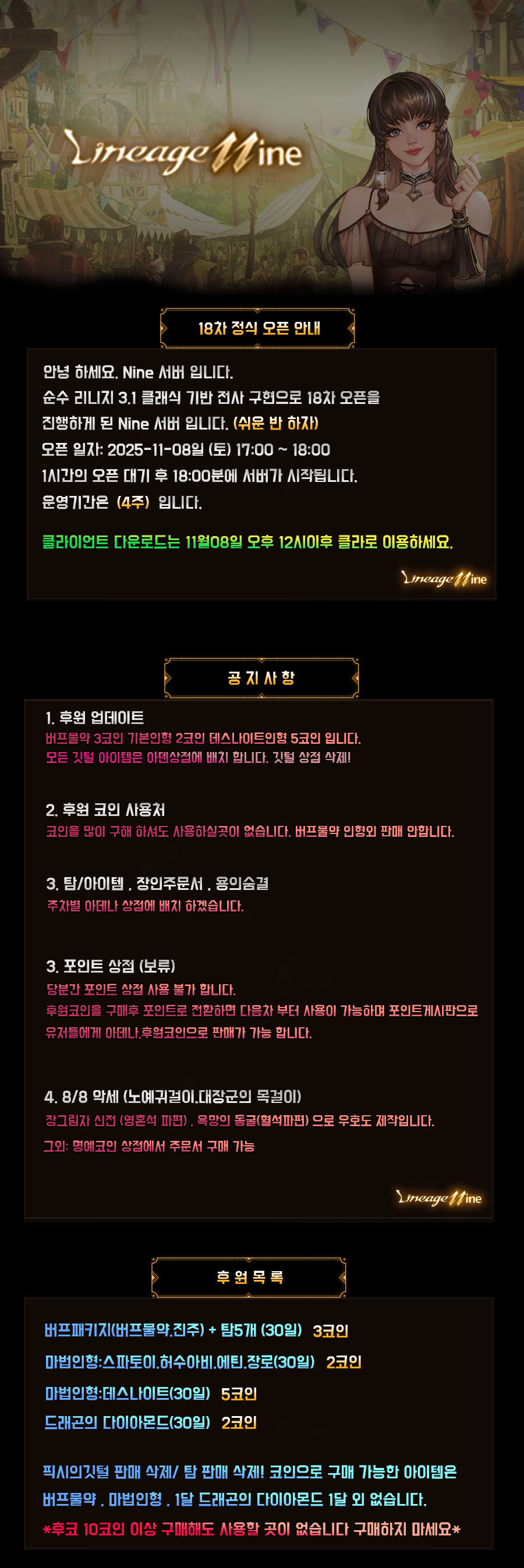 18차 정식오픈 공지사항